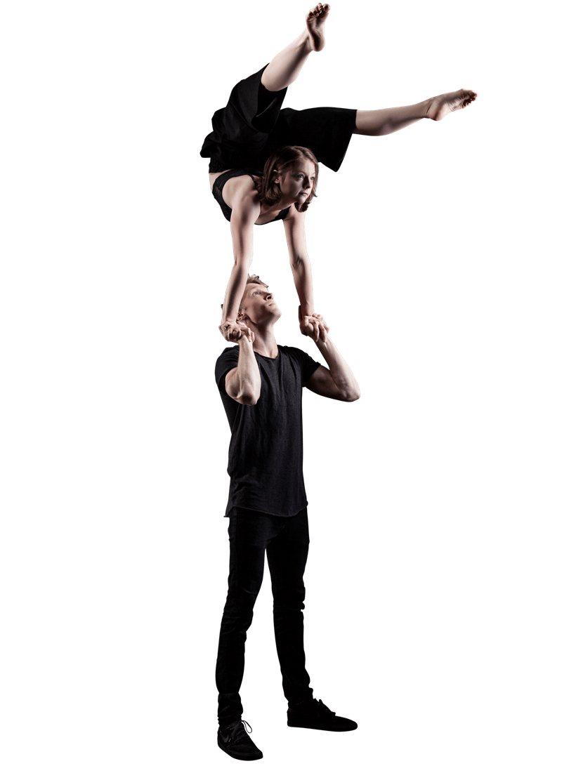 Wir lernten uns während der Ausbildung kennen. Neben unseren Soloacts kreierten wir unseren Hand to Hand Act und beschlossen unsere Kunst gemeinsam dem Publikum zu präsentieren. Sowohl solo als auch zusammen möchten wir unsere Zuschauer bestmöglich unterhalten und begeistern.